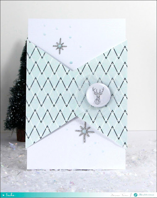 Des couleurs douces et tendres, un petit badge et un tampon Comptoir du Scrap